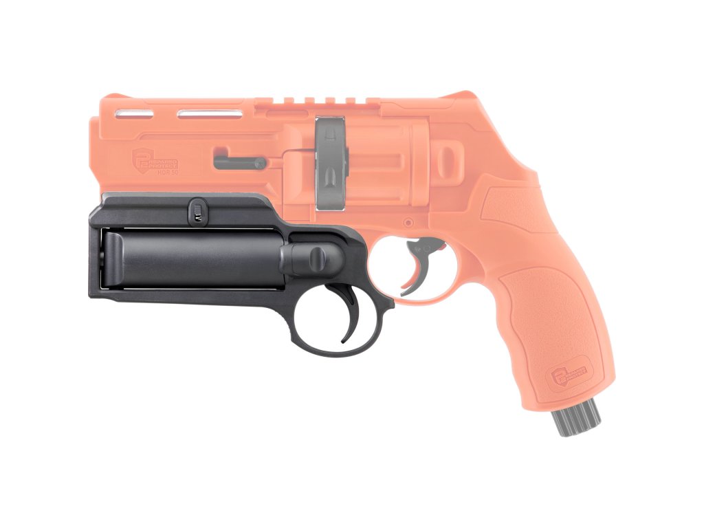 R 50 Launcher je ideálním rozšířením pro revolver HDR 50 Home Defense, který střílí gumové kuličky, pepřové kuličky, značkovací kuličky nebo křídové kuličky ráže .50. Tento odpalovač rozšiřuje možnosti vaší zbraně o funkci aplikace pepřových sprejů P2P PGS, což výrazně zvyšuje variabilitu obranného použití.