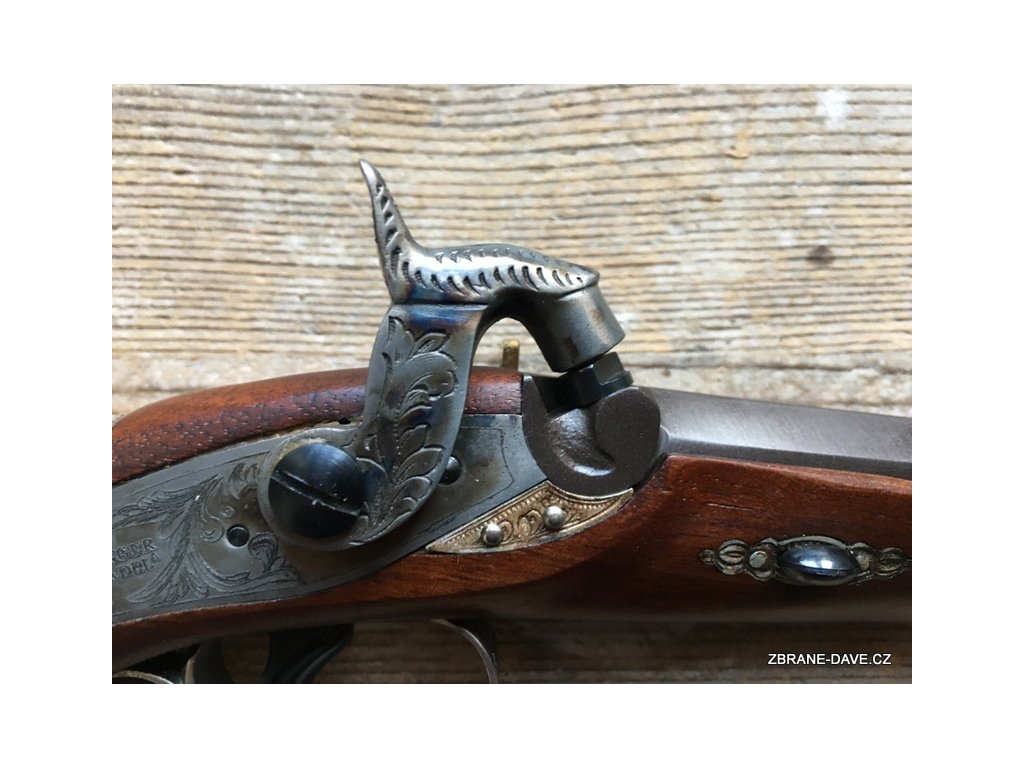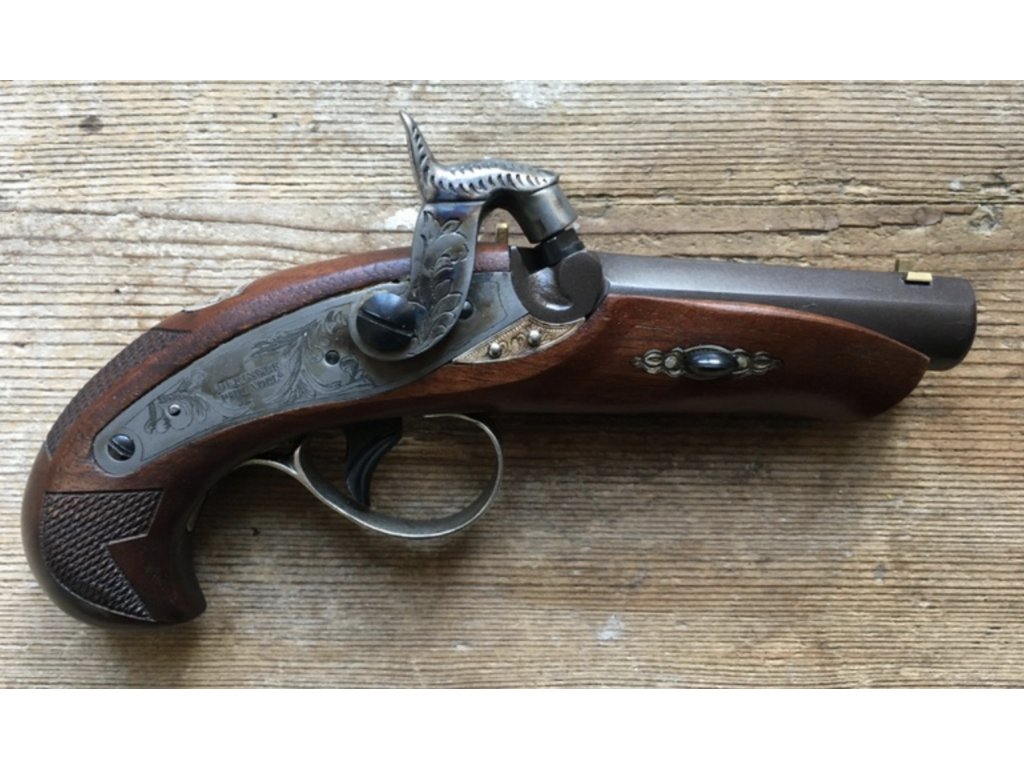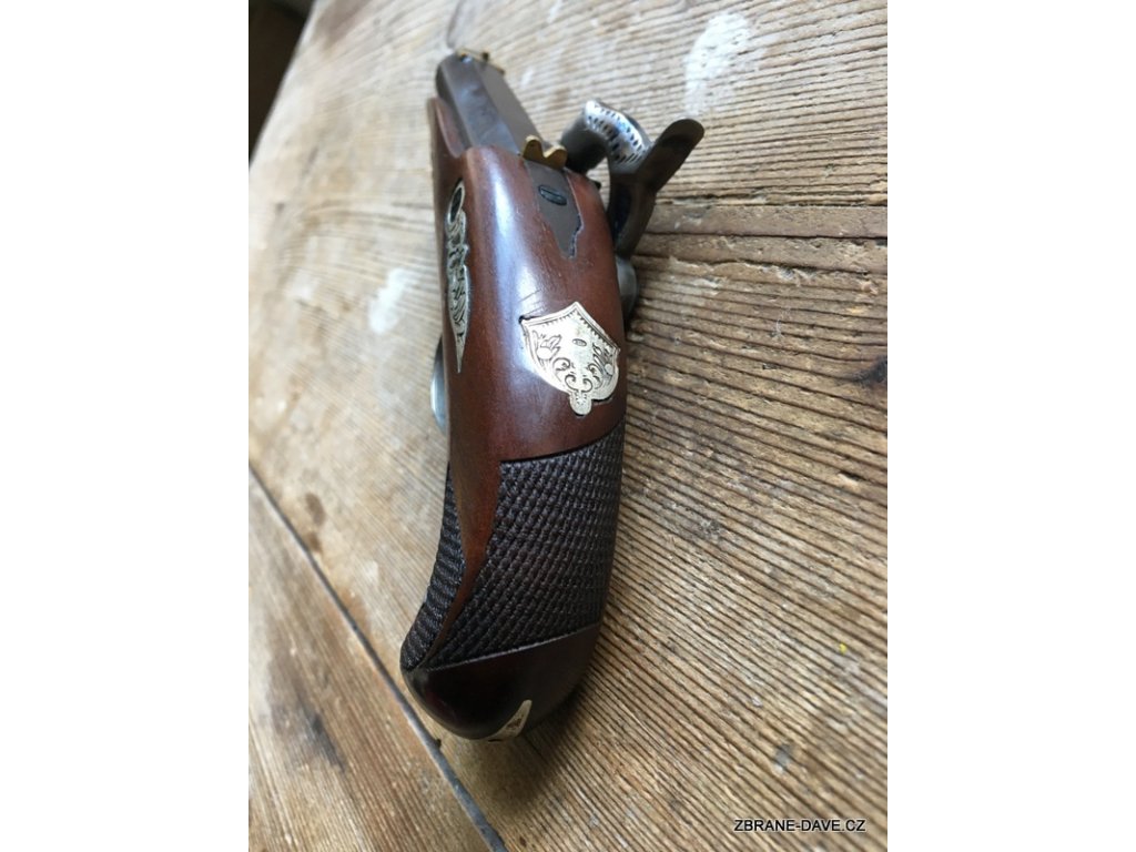 Philadelphia Derringer je jednou z nejslavnějších perkusních pistolí 19. století. Malá, elegantní a snadno ukrytelná zbraň, která si získala oblibu mezi civilisty i vojáky. Luxusní varianta German Silver je osazena zdobenými kovovými prvky ve stříbrném provedení a ruční rytinou, což z ní činí výjimečný sběratelský kus.