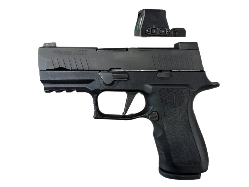 SIG Sauer P320X Compact v konfiguraci s kvalitním kolimátorem SIG Sauer Romeo X PRO. Zbraň je v dobrém technickém stavu, pravidelně čištěná a udržovaná. Minimální známky opotřebení, bez funkčních závad.