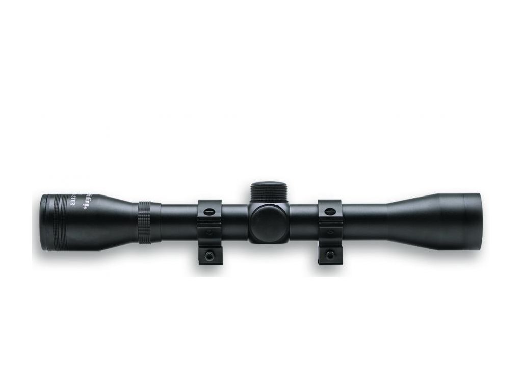 - Puškohled je vybaven stálým čtyř násobným přiblížením a průměrem čočky 32 mm