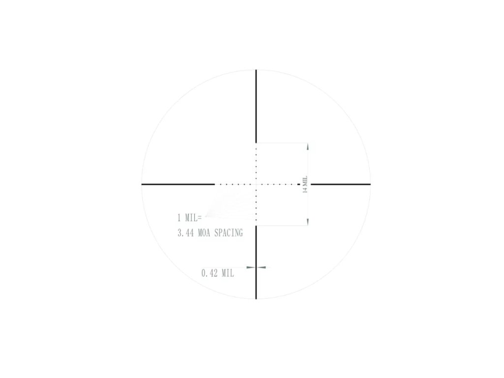 Záměrný kříž je umístěn ve druhé ohniskové rovině, což znamená, že při změně zvětšení nemění svou velikost. Pro lepší čitelnost za zhoršené viditelnosti je podsvícen červeně ve 11 stupních intenzity.