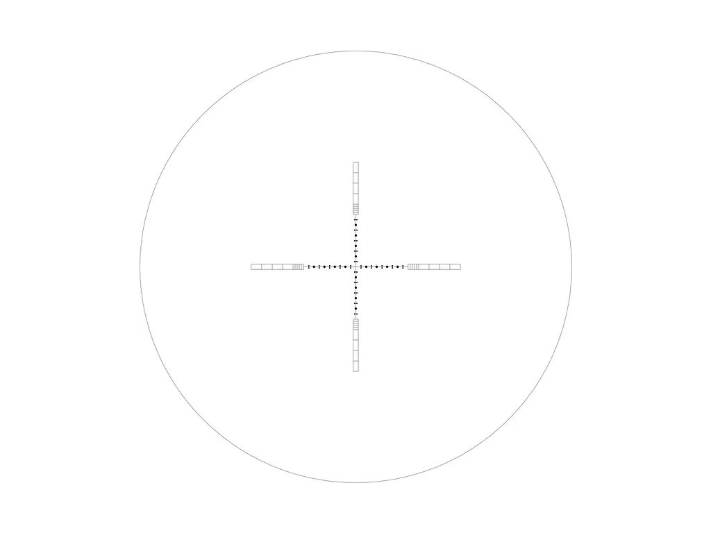 Záměrná osnova 10x 1/2 Mil-Dot je univerzální a díky svému jemnému členění je vhodná pro přesnou střelbu na různé vzdálenosti. Kříž je leptaný do skla, což zaručuje jeho vysokou odolnost vůči zpětnému rázu. Nachází se ve druhé ohniskové rovině, takže jeho velikost se nemění se zvětšením.