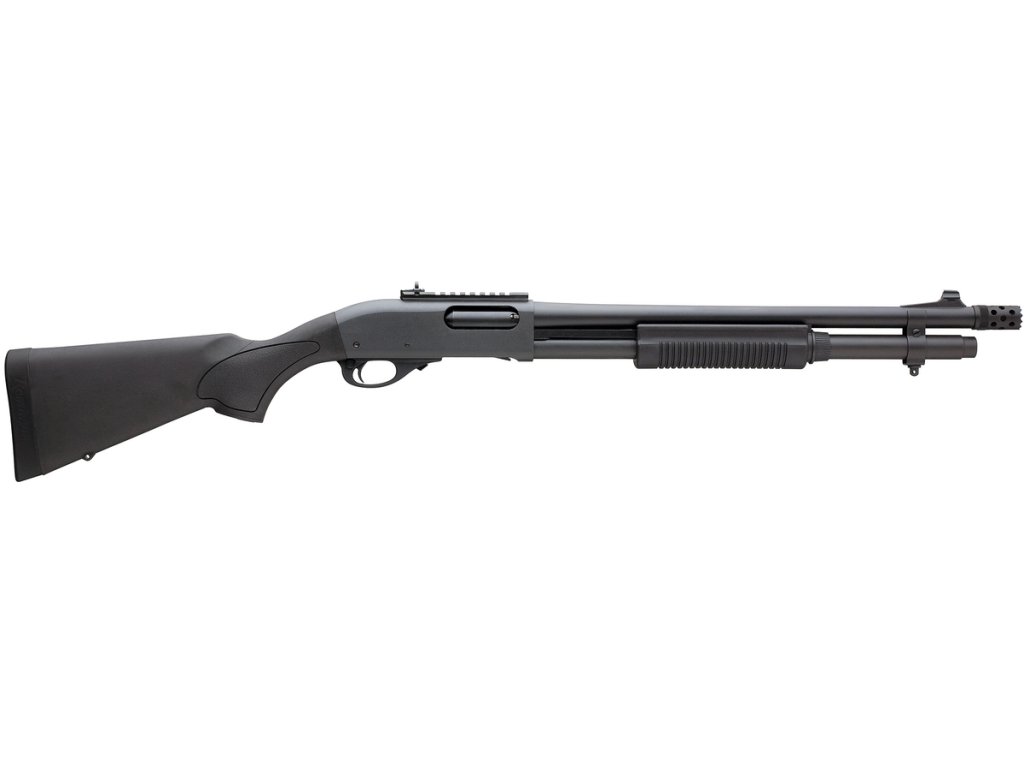Model 870™ Tactical s rychle mířící 18 1/2" hlavní, postavený na našem legendárním pumpovacím mechanismu, který se stal zlatým standardem pro vysoce rizikové aplikace, obsahuje náš rozšířený port Rem Tactical Choke. Nabízí plnou palebnou sílu 7 nábojů ráže 12 s průměrem 2 3/4" nebo 3" s továrně instalovaným dvouranovým nástavcem.