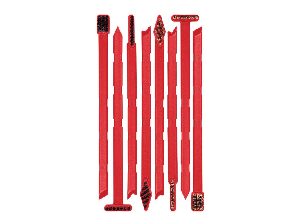 Od základu navržený pro lepší a rychlejší čištění zbraní. Mikroštětinky zůstávají pod tlakem tuhé a poskytují vynikající čisticí výkon. Čtyři jedinečné tvary kartáčů s integrovanými škrabkami jsou navrženy speciálně pro čištění těžko přístupných vnitřních a vnějších povrchů, kde se hromadí karbon a nečistoty.