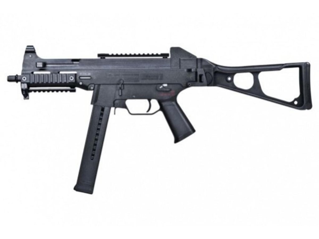 Díky licenci na výrobu autentických replik může tento elektricky poháněný airsoftový samopal nést originální značky HK UMP.