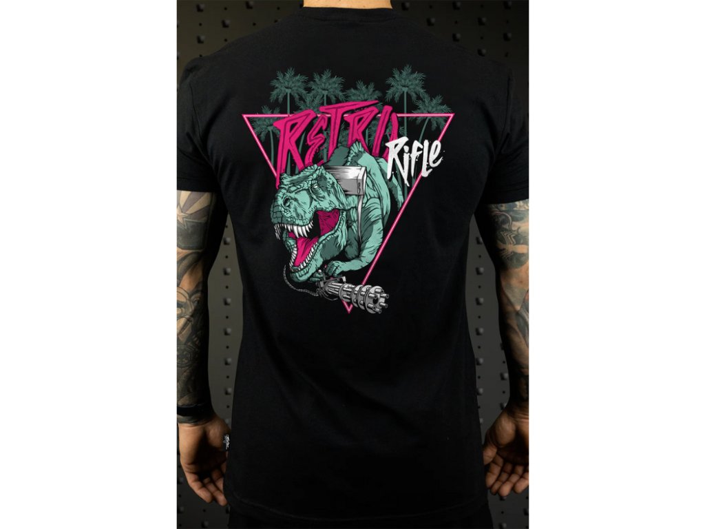 Charakteristickým prvkem je originální T-Rex potisk, který dodává tričku zábavný a osobitý nádech. Díky svému stylu i pohodlí se rychle stalo jedním z nejoblíbenějších kousků značky Retro Rifle.