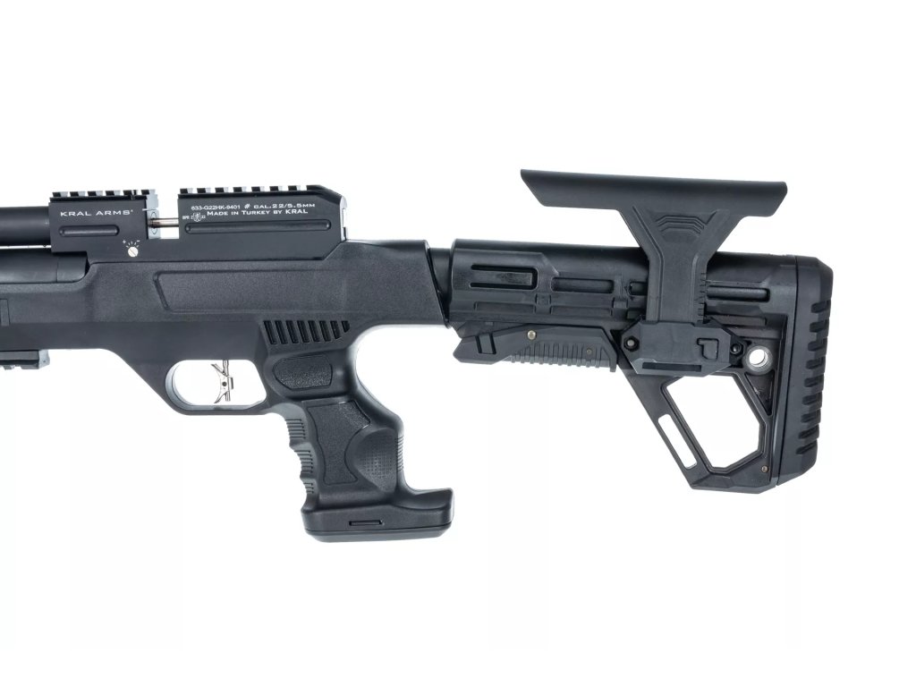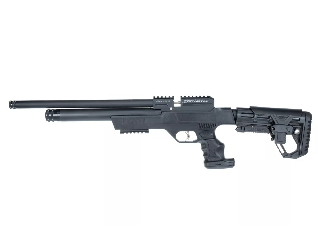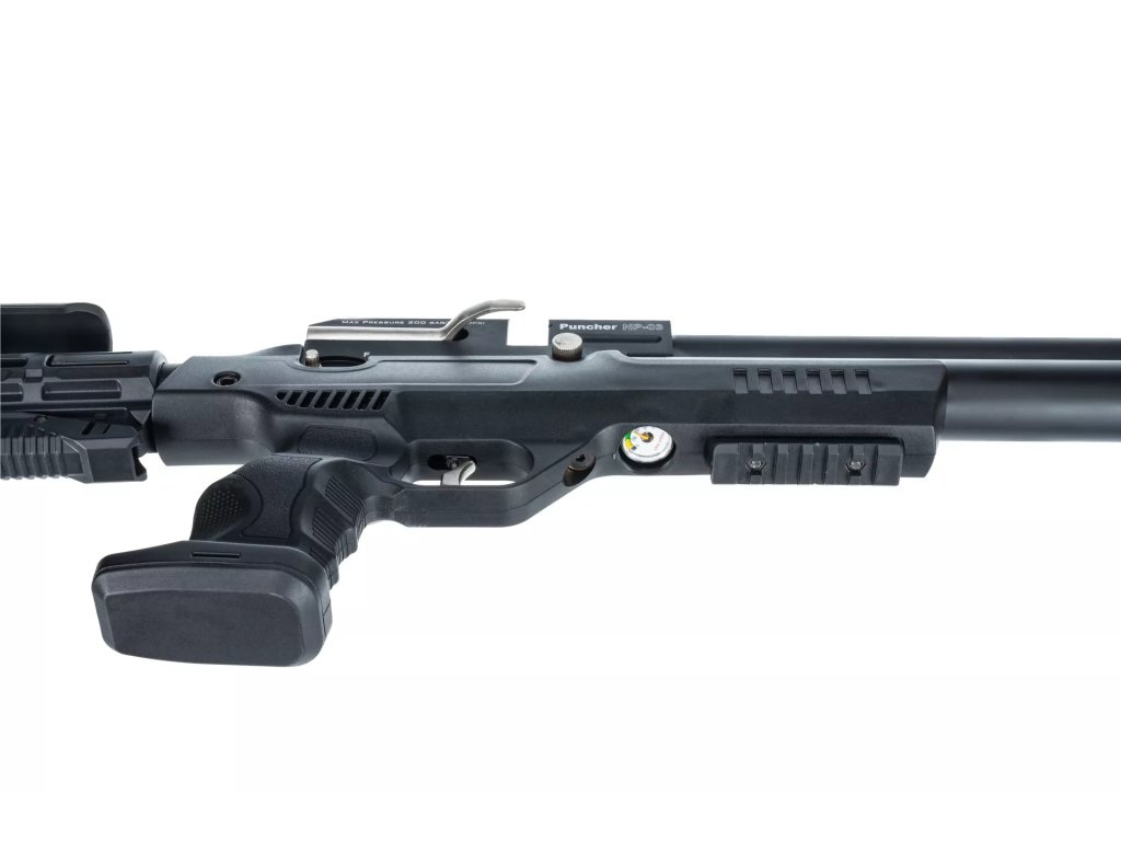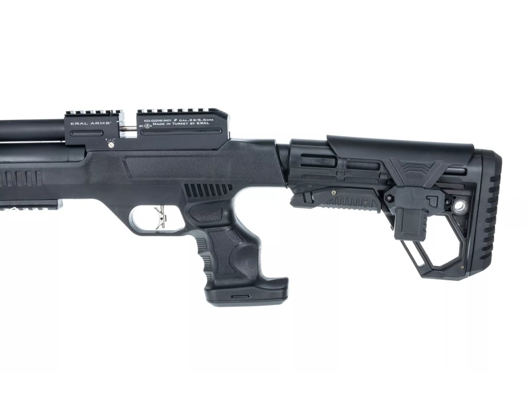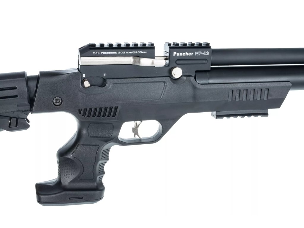 Kral Puncher NP-03 je lehká a snadno ovladatelná taktická karabina (vzduchovka), která nabízí vynikající poměr cena / výkon. Robustní syntetická pažba je délkově nastavitelná (800–880 mm) a disponuje výškově stavitelnou lícnicí pro přesné zamíření. Anatomicky tvarovaná pistolová rukojeť zajišťuje pohodlný úchop.