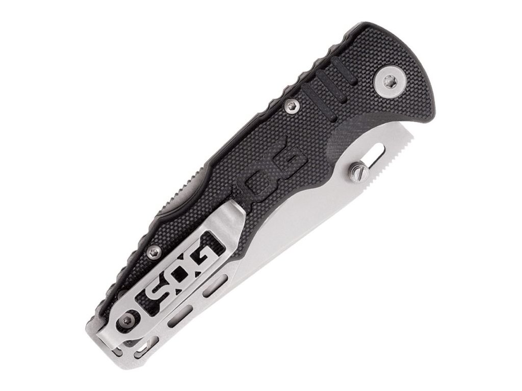 Rukojeť z texturovaného G10 poskytuje pevný a jistý úchop i v náročných podmínkách. Nůž je dále vybaven více otvory pro šňůru (lanyard/lashing slots) a reverzibilním kapesním klipem s nízkým profilem (low carry), který umožňuje diskrétní nošení. Tento EDC nůž SOG je ideální volbou pro všechny, kteří hledají odolný, přizpůsobitelný a spolehlivý zavírací nůž.